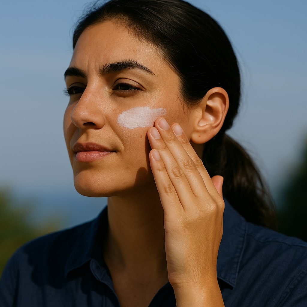 Sunscreen prevents up to 80% of visible skin aging by blocking harmful UV radiation. Our mineral zinc oxide formulation physically reflects and scatters UV rays before they penetrate skin, enhanced with raspberry seed oil and sea buckthorn for additional protection and DNA repair—a crucial daily step even indoors or on cloudy days.